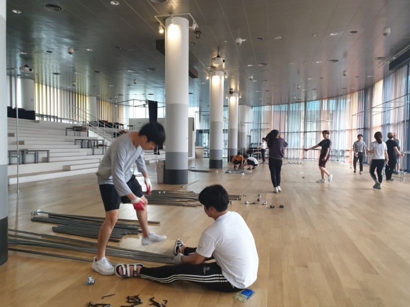 숭실대 건축학과 전시부스를 파이프클램프를 이용하여 만들었습니다.
